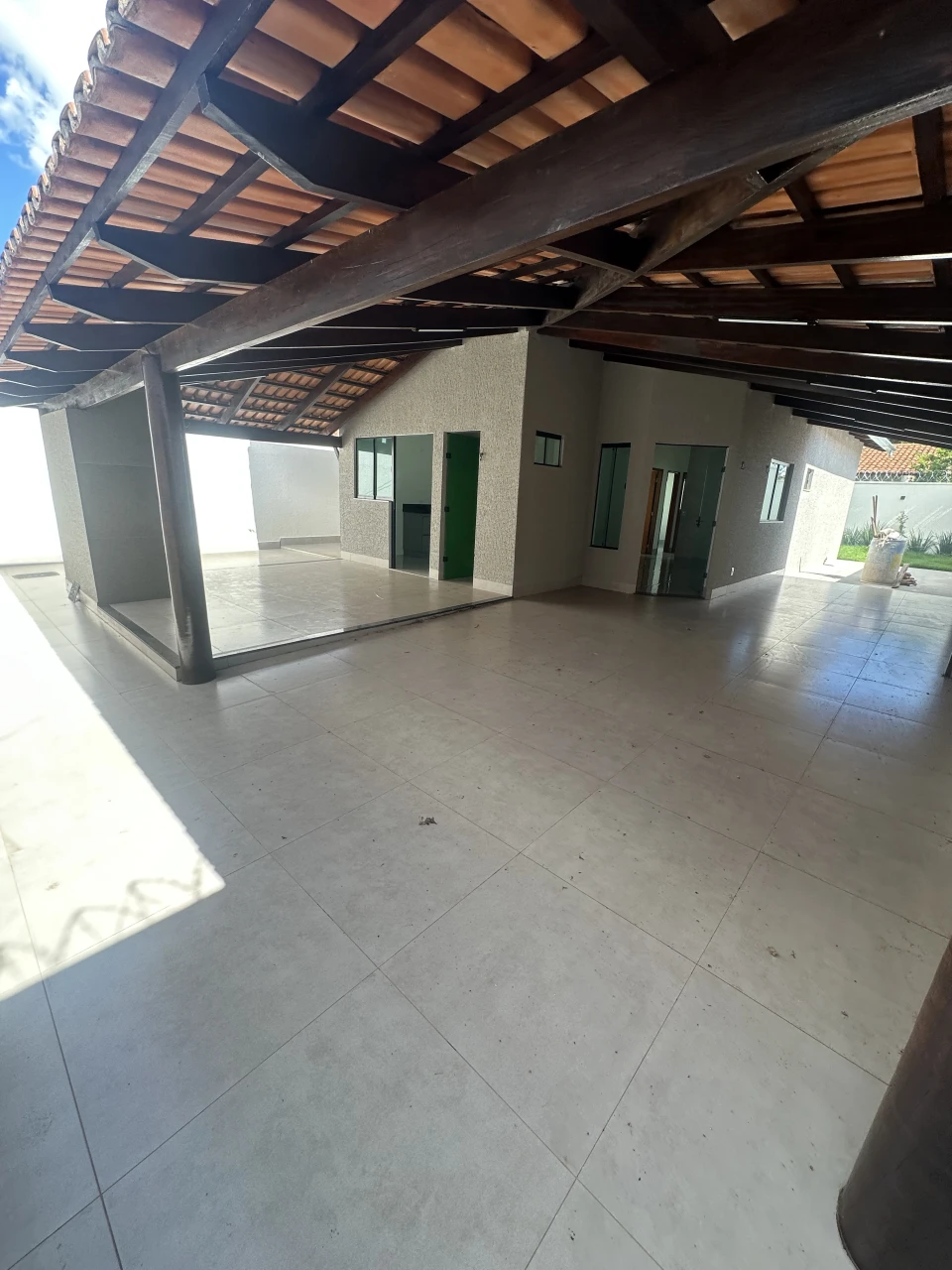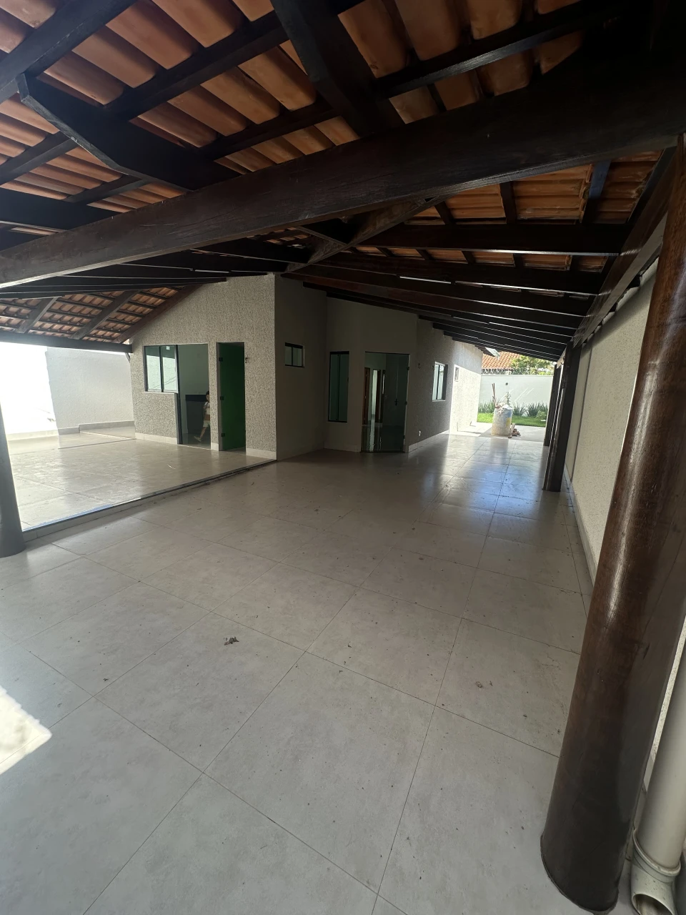 Casa 3Q (sendo 1 suíte) toda reformada no porcelanato, banheiros com armários e box, com um amplo quintal e área de serviço coberta.