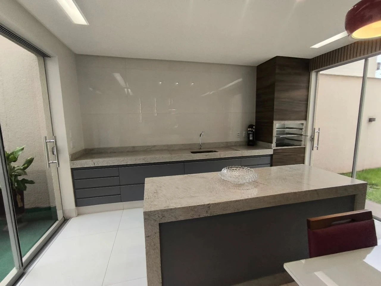 Duas salas amplas. Área gourmet integrada para receber amigos. Usina fotovoltaica gerando economia todos os meses. 4 vagas e dois portões de acesso.